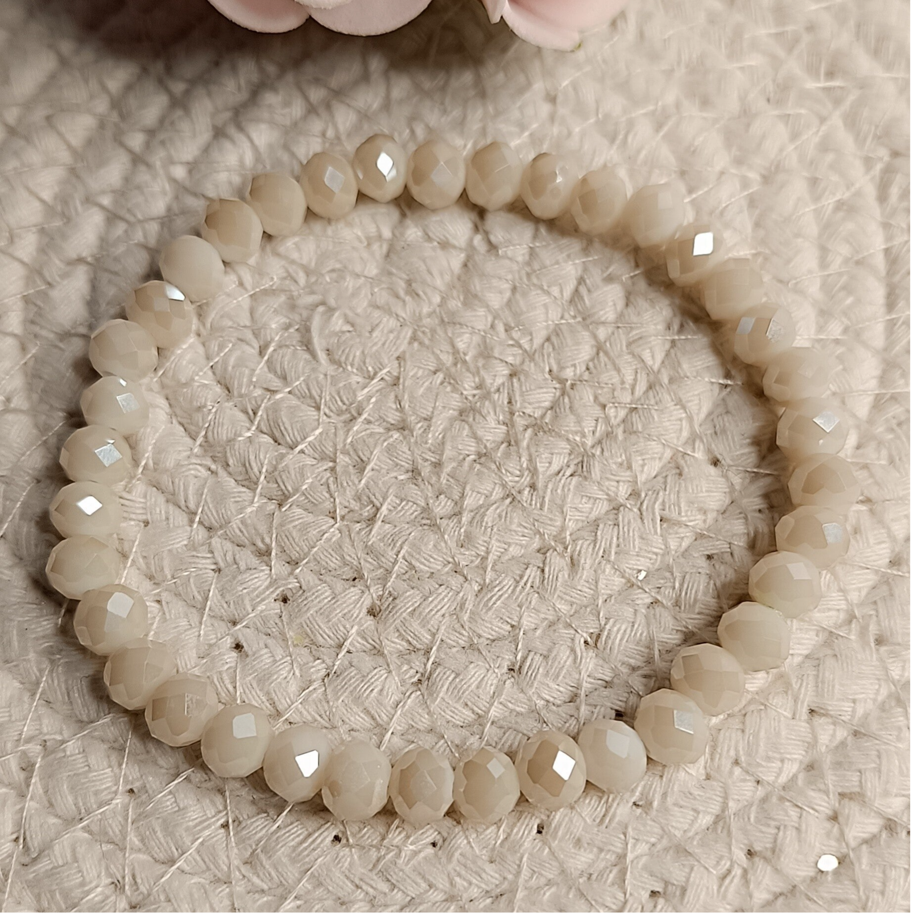 Geef je look een frisse, romantische touch met deze ivoorwitte facetarmband. De zachte glans van de parelwitte kralen vormt een prachtige contrast.